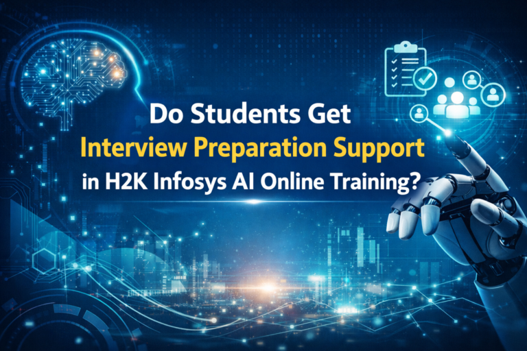 Yes, Students enrolled in Artificial Intelligence Online Training programs at H2K Infosys typically receive structured interview preparation support alongside technical learning. This support usually includes resume guidance, mock interviews, project-based discussion practice, and exposure to real-world machine learning use cases expected in technical interviews. In many interview readiness is integrated with hands-on learning rather than treated as a separate module.